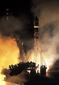 Старт ракеты-носителя «Союз-ФГ» 10 октября 2007 года (17.23 по «Москве») с пилотируемым космическим кораблем «Союз ТМА-10».