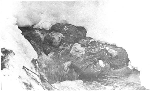 Погибшие в ручье: фотомонтаж Александра Сидина (слева внизу) из трёх снимков – двух верхних и правого снимка внизу. Кружками выделены характерные совпадающие детали соединённых снимков
