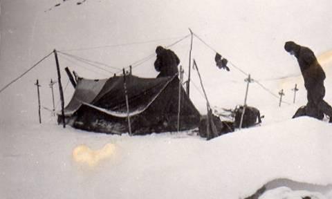 Установка двойной палатки дятловцев в горных условиях похода 1958 г. по Приполярному Уралу группы М.А.Аксельрода, фото Бартоломея П.И.