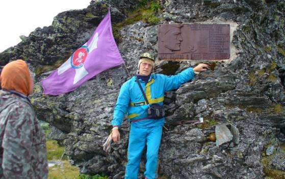 А.Мохов и Буянов у памятной доски на останце перевала Дятлова, в августе 2008 г.