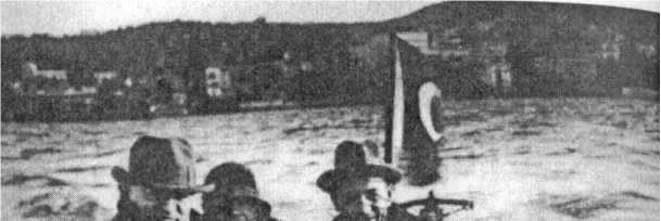 Под турецким флагом. Л. Д. Троцкий, его жена Н. Седова и А. Соболевичус в начальный период изгнания из СССР (Соболевичус, как узнали Троцкие впоследствии, являлся агентом ОГПУ). 1929 г.
