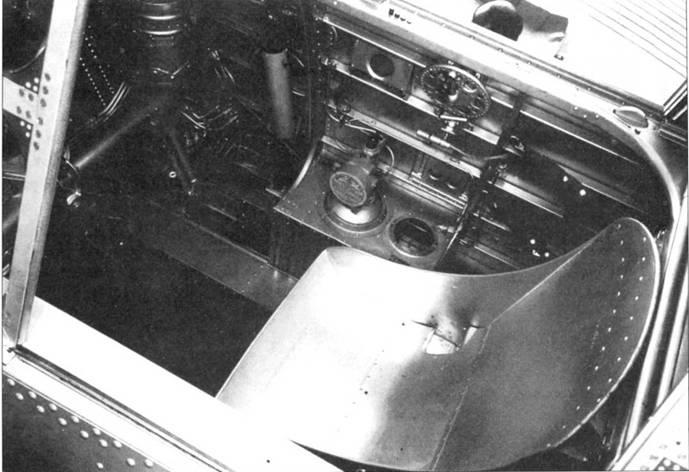 Место штурмана-бомбардира находилось сразу за кабиной пилота. Баллон с газом СО2, справа от кресла, предназначен для надувания крыльевых мешков при посадке на воду. Ниши в креслах на TBD-1 были сделаны под парашюты, на которых сидел экипаж во время полёта.