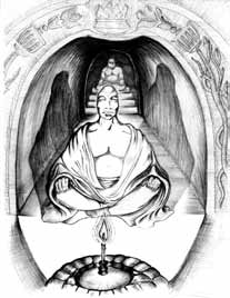 Настройтесь полем сознания на восприятие своего сердца. Прислушайся к его ритму. Затем поищите в области сердца Золотистую Точку Будды. Природа Точки трансцендентна. Ее можно увидеть на внутреннем экране, нарисовать воображением или просто ощутить. Она отзовется сама, стоит только обратить на нее внимание.