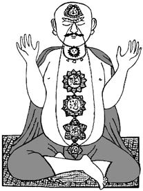 Встаньте прямо, ступни ног вмести, руки сложены лодочкой на груди. Полем сознания освободите голову от хаоса мыслей, расслабьте тело и растворите мышечное напряжение. Выполните полное дыхание йогов и выдохните напряжение тела. Затем сознанием усильте вращение полей ауры по часовой стрелке. Ощутив ток вращения, перенесите внимание на канал хару (см. рис.; для большего эффекта его можно визуализировать на третий глаз), вращая его против часовой стрелки.