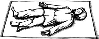 Вы лежите на спине, руки расположены вдоль туловища ладонями вверх, ноги на ширине плеч, глаза закрыты. Далее ладони и ступни «разваливаются» под собственной тяжестью в стороны.