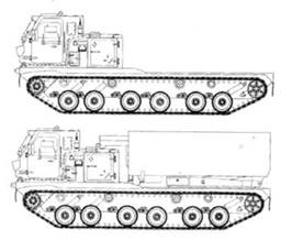 Разработано шасси М987 грузоподъемностью 10 т с удлиненной ходовой частью и измененной компоновкой: в передней части установлена откидная четырех местная бронированная кабина, под ней смонтированы двигатель и трансмиссия, большую часть шасси занимает платформа. М987 послужило базой для 240-мм 12-ствольной РСЗО М933 MLRS. В отличие от «Брэдли», MLRS принята на вооружение- других стран НАТО — Великобритании. Италии, ФРГ (под обозначением MARS), закуплена Францией. 11а основе агрегатов М9Н7 и танка МI создан транспортер MASV грузоподъемностью 13,5 т.