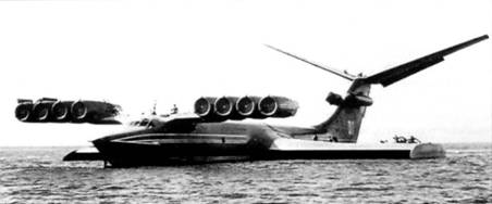 В 12 ч запустили все двигатели, и КМ начал самостоятельное движение. Выполнив разбег, он вышел на режим глиссирования до скорости 200 км/ч. Экраноплан вел себя устойчиво, слушался всех органов управления.
