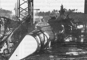 В ходе приема было также дано указание ускорить строительство защищенного стационарного пускового комплекса в Ваттенне на крайнем северо-западе Франции, работы по которому уже развернулись по личной инициативе Шпеера. Гитлер, испытывавший особую любовь к грандиозным сооружениям, не только одобрил представленный макет этого бункера, но и приказал нарастить толщину железобетонного перекрытия до 7 м. Однако объект шириной 90 м и длиной 45 м оказался слишком заметным. В ходе налета 27 августа 1943 г. 185 тяжелых бомбардировщиков союзников он был разбомблен еще на стадии возведения стен до высоты 3,5 м. Немцы решили срочно возвести перекрытие толщиной 3 м и по мере наращивания высоты стен поднимать его гидравлическими домкратами на проектную высоту, после чего довести толщину до заданных 7 м. Вместо стартового комплекса в сооружении разместили оборудование по производству жидкого кислорода. Но оно было выведено из строя при новых налетах, хотя даже тяжелые бомбы не смогли пробить перекрытие.