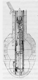 Поперечный разрез ПЛ проекта 629А в районе установки ракетных шахт СМ-87-1.