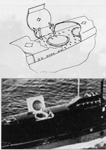 В основном же изменился IV отсек. На местах старых шахт, предназначавшихся для ракет Р-13, были установлены три новые шахты меньшего диаметра (2150 мм) для БРПЛ Р-21 с пусковыми установками СМ-87-1 такой же конструкции, как на проекте 629Б, смонтированы новые устройства и системы по обслуживанию ракет и шахт — подачи к ракете воздуха и азота, затопления и осушения шахт, электропитания.