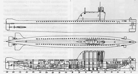 Наружный вид и общее расположение ПЛ проекта 658М.