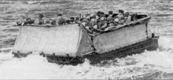 Перевозка личного состава на транспортере К-61, оснащенном штормовым оборудованием.