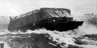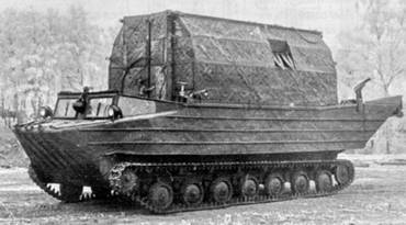 Первый опытный образец изготовили 30 апреля 1948 г. Заводские испытания машины выявили ряд конструктивных и производственных дефектов. Так, при движении на воде появилась течь через уплотнение откидного борта и люк