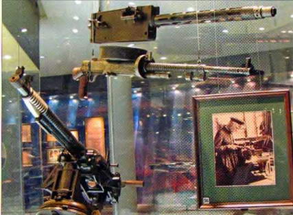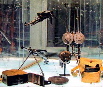 Пулеметы 1930-х гг.: авиационные ПВ-1 и ДА, рядом - опытный станковый пулемет ТКБ-67 системы Силина.