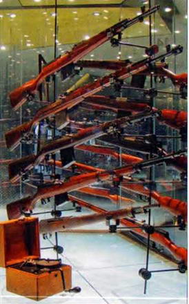 Опытные самозарядные и автоматические винтовки и карабины, разработанные Ф.В. Токаревым в ЦКБ СВ (ЦКБ-14) с 1924 г. по 1941 г. Внизу - разработанный Ф.В. Токаревым прибор для измерения темпа стрельбы.
