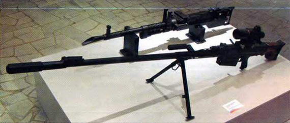 Серийная крупнокалиберная снайперская винтовка ОСВ-96 разработки тульского КБП и опытный танковый пулемет Шпитального.