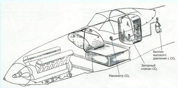 Напомним, что бензобаки на серийных Ил-2 заполнялись углекислотой (С02) от специального баллона. Это создавало определенные затруднения при эксплуатации самолета на фронте: в БАО не всегда имелось специальное оборудование для заполнения баллонов углекислотой и, кроме того, на аэродроме предъявлялись довольно жесткие условия по хранению заправленных баллонов.