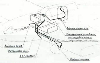 Схема заполнения бензобаков Ил-2 выхлопными газами (апрель 1944 г.):