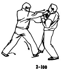 Практические действия: ваша правая нога в результате проведенного удара делает полшага вперед и приближает вас к противнику. Одновременно вы наносите правым кулаком удар противнику в голову, (см.: рис. 2-100).
