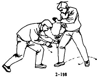 Усилием обеих рук прижимайте его книзу, так чтобы причинить боль в запястье и травмировать его (см. рис. 2-205). Движения по заплетанию левой руки и заплетанию правой руки одинаковы, но выполняются в противоположных направлениях.