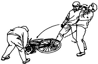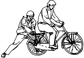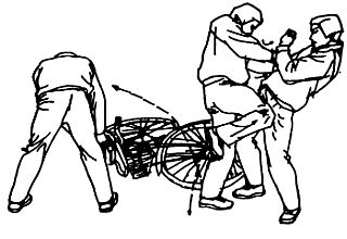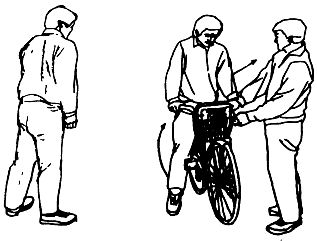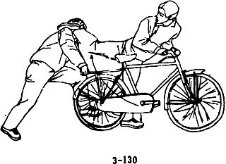 Требования: слезать с велосипеда следует быстро, внезапно толчком опрокинуть велосипед, воспользоваться благоприятным моментом