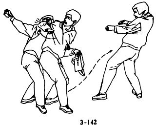Руки жесткие, талия напряжена, соединить выдох с опусканием ци, тем самым умножить силу удара.