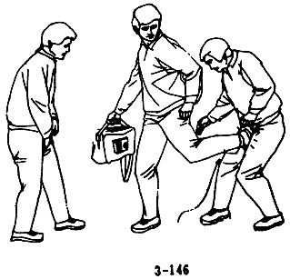 Опустить ц и и регулировать дыхание, расставить ступни, слегка согнуть колени и присесть в позе мабу, в каждую руку взять по кирпичу, поднять их перед грудью, попеременно то правую, то левую руку толкать перед собой, повторить упражнение 50–80 раз (см. рис. 4–6).