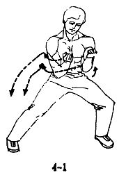 Методика тренировок: встаньте у мешка с песком или у колонны (столба), поднимите кончик языка к небу, поочередно наносите легкие удары обеими руками по мешку или столбу. Движения рук начинаются от талии. В тот момент, когда рука касается столба, задерживайте дыхание. Следует поочередно касаться столба всеми точками руки от плеча до кисти, справа и слева. Повторите упражнение 100 раз, тренируйте кожный покров, мышцы и кости рук на прочность, повышайте сопротивляемость рук, способность действовать в атаке и обороне (см. рис. 4–3).