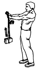 к тренировкам: сделать глубокий вздох, опустить ци так, чтобы возникло внутреннее давление. Следует координировать сдерживание дыхание и нанесение ударов, в момент удара следует опустить ци и напрячь живот, руки жесткие, талия напряжена, внимание сконцентрировать на ударной точке на спине или плече;б) способ нанесения ударов палкой.