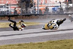 Наклон ускоряющегося мотоцикла – зрелище не для слабонервных, особенно если за рулем новичок. Он хочет ехать быстро и думает, что это означает больше газа. Он ошибается. А все потому, что не очень хорошо представляет себе, что байк лучше рулится с закрытым или, как минимум, сброшенным газом. Кроме того, этот новичок напрашивается на жестокий хайсайд, поскольку добавляет «угловые» единицы, не отдавая единицы тяги. А всего-то нужно сбросить газ перед поворотом и все будет хорошо. Итак, не важно, ускоряетесь ли вы в наклоне или наклоняетесь при ускорении – от перемены мест слагаемых сумма не меняется. Как только требуемые единицы сцепления зашкаливают за 100, шина начинает скользить.