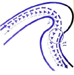 Вторая ошибка – попытка обгона на выходе из поворота по внутреннему радиусу. В этом случае обгоняющий старается ускориться интенсивнее, чем обгоняемый. Он едет по меньшему радиусу (то есть с большей загрузкой задней шины) на фоне более мощного ускорения (то есть опять-таки с большей загрузкой задней шины). Звучит как рецепт отличного хайсайда. Обгоняющий увеличивает количество единиц сцепления сразу двумя способами и кроме того нарушает равенство скорость = радиус. Конечно, такой обгон возможен, если обгоняемый едет гораздо медленнее обгоняемого, но во всех остальных случаях он опасен.