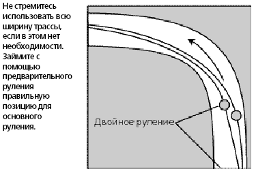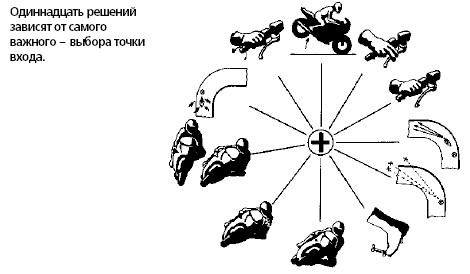 Выбор точки входа – незаменимое средство борьбы с ПИСами, срабатывающими при подходе к повороту. И, кроме того, это важное средство борьбы за точность и логичность действий. Если вы не выбрали точку входа сами, она окажется в случайном месте. Гонщики, полагающиеся на удачу при выборе точки входа, выглядят на трассе неуверенными, они вынуждены подруливать в повороте и долго не открывают газ. Это проявления ПИСа №6 (неэффективное руление).