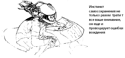 Я думаю, все согласятся, что потом вступает в действие инстинкт самосохранения, обычно называемый страхом. Как только основные приемы вождения освоены, появляется кнопка "Паника", и каждый нажимает ее при подходе к своему собственному пределу возможностей. Именно это и мешает достичь поставленных целей, подрывает самоуважение и лишает уверенности в своих силах.