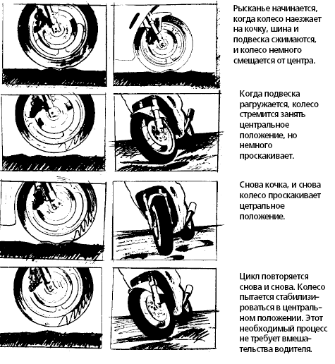 Отличный пример – вождение кроссового мотоцикла по песку. Вцепитесь в руль изо всех сил – байк будет очень нестабильным и, скорее всего, упадет. Ослабьте хватку, и байк поедет прямо, хотя передняя вилка будет интенсивно работать. Езда по продольным неровностям тоже может служить примером, пусть и не таким ярким.