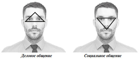 Когда Вы ведете деловую встречу, то Вам достаточно представить, что на лице вашего собеседника находится треугольник, вершинами которого являются глаза собеседника и любая точка на его лбу.