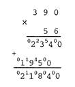 Пусть предельная разрядность сомножителей равна трем цифрам, а результата — четырем. Аналогично приведенному образцу умножения чисел 391*56 = 21896 (переполнение)
