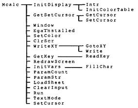 Процедура Window определяет окно на экране дисплея для размещения информации всей таблицы. Далее начинает выполняться код главной программы Mcalc.