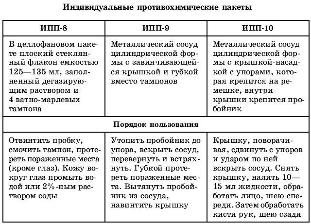 – Каков состав индивидуального противохимического пакета ИПП-8? ИПП-9? ИПП-10?
