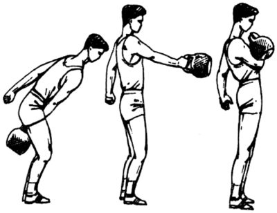 б) Упражнения с отягощением — весом предметов (набивные мячи, гантели) рекомендуется применять для повышения силы мышц, участвующих в выполнении специфических упражнений дзюдо (имитация бросков, уходов с удержаний).