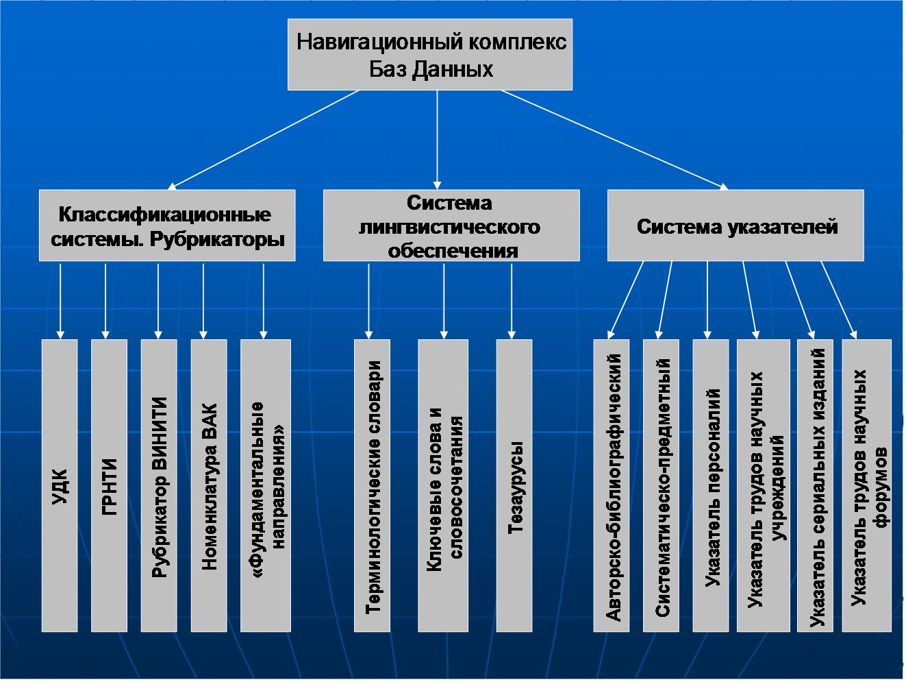 БД указателей содержит систему различного вида указателей, применяемых при информационном поиске (7).