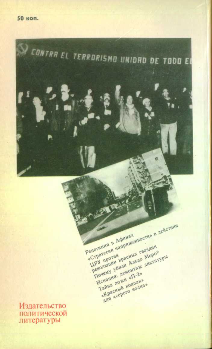 то из одной, то из другой страны поступают сообщения о политических убийствах и тайных заговорах. Но если исполнители разработанной ЦРУ «стратегии напряжённости» выступают под самой разной личиной — матёрых неофашистов, правых и «левых» террористов, генералов-путчистов, вынашивающих планы правых переворотов, то покровитель у них один — наиболее реакционные круги империалистических государств, прежде всего США, пытающиеся любой ценой затормозить поступательное движение вперёд сил прогресса, нанести удар по демократическим партиям и организациям, всему организованному движению трудящихся, добиться сдвига вправо на политической арене западноевропейских стран.«Империализм, — отмечал в своей речи на июньском (1983 года) Пленуме ЦК КПСС Генеральный секретарь ЦК КПСС, Председатель Президиума Верховного Совета СССР Ю. В. Андропов, — запутался во внутренних и межгосударственных антагонизмах, потрясениях, конфликтах. Это глубоко, но по-разному сказывается на политике капиталистических стран… Резко увеличилась агрессивность ультрареакционных сил во главе с империализмом США. Предпринимаются попытки любой ценой повернуть развитие вспять. Конечно, такая политика не принесёт империалистам успеха, но своим авантюризмом она крайне опасна для человечества. Поэтому она встречает мощное противодействие народов, которое, несомненно, будет возрастать».