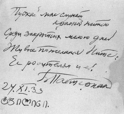 Я убеждена, что Тициан Табидзе стал жертвой Л. Берия в силу личной неприязни… Он с первых же дней своего возвышения не терпел людей, идущих своим путем, имеющих свое мнение, хотя бы по вопросам культуры, истории, искусства, в которых Берия, по своему полному невежеству, ничего не смыслил… Прошу о пересмотре „дела“ Тициана Табидзе и, если его уже нет в живых, хочу надеяться, что руководители партии и правительства найдут возможным восстановить чистое, светлое имя поэта…» [30]