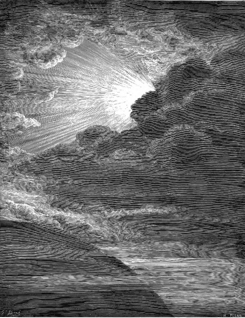 Когда настало время для начала творческой деятельности, над темным бесформенным веществом прогремело слово Божие: «Да будет свет! и стал свет». Над бездной хаоса мгновенно рассвел прекрасный день Божий и озарил мрачную утробу довременной тьмы. «И увидел Бог свет, что он хорош»; и «отделил Бог свет от тьмы. И назвал Бог свет днем, а тьму ночью. И был вечер, и было утро: день один».