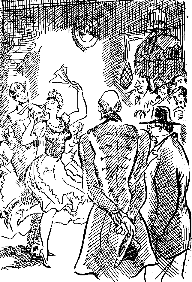 То здесь, то там вырывался из толпы громкий выкрик, покрывающий общий гул. Ну, прямо вельзевулова свадьба! «Э-эх! У-ух!» — это кто-то выражает свое буйное веселье. Вот слышится приглушенный визг — какой-то кавалер ущипнул свою даму. Ну да ничего… Ноги продолжают выстукивать так, что гудят полы и вздымаются облака пыли.