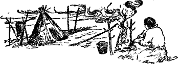 Слышались ровные удары топоров, люди ставили около чумов высокие колышки для просушки одежды, обуви, для привязывания оленей. Усталые олени, освободившись от тяжелого груза, торопливо шагали в тайгу искать сочный мох. Собаки вертелись у людей под ногами, надоедливо мешали. То там, то тут слышалось:
