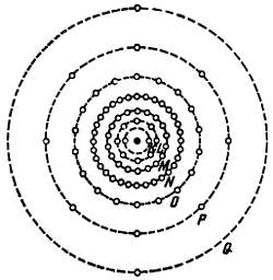 Л. — Никакой, так как эта оболочка не может иметь больше двух электронов; Точно так же оболочка L не может иметь больше 8 электронов. На оболочке М может находиться не более 18 электронов, на оболочке N — не более 32, на оболочке О — не более 50, на оболочке Р — не более 72 и на оболочке Q — не более 98 электронов.