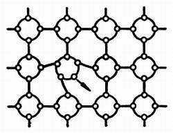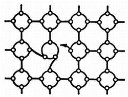 Рис. 12. Здесь в кристаллической решетке полупроводника имеется трехвалентный примесный атом, который стремится притянуть к себе электрон от соседнего атома.