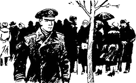 Проходя мимо очереди, я каждый раз испытывал чувство вины перед этими людьми, старался поскорей миновать их, озябших, усталых, голодных. Мне было стыдно перед ними за то, что я одет в теплую, сшитую по фигуре шинель, что на голове у меня щегольская фуражка с золотой эмблемой, а на ногах — крепкие, до блеска начищенные ботинки.