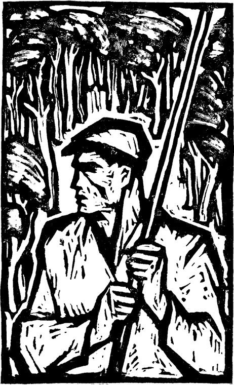 Непрерывны темно-зеленые стены с острыми зубчиками еловых верхушек. Они тянутся по обе стороны реки. Зеленеет местами на пойме светлый луг, но сзади всегда видна темная полоска леса.
