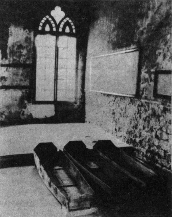 Эту церковь фашисты превратили в застенки, заготовив впрок гробы для своих жертв. Не все удалось использовать. Теперь это музейные экспонаты